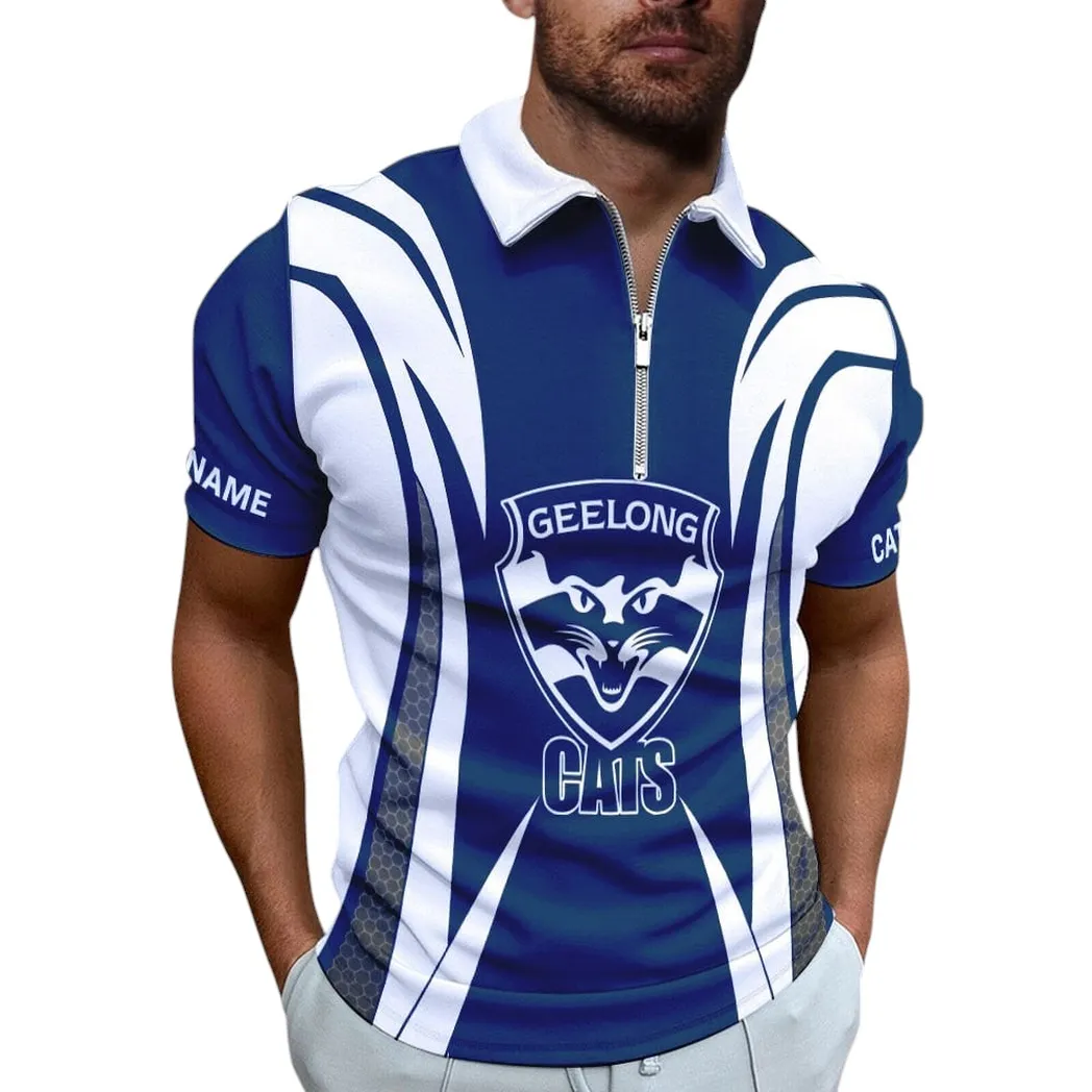 Geelong Cats AFL Zipper Polo Shirt AFL11121024141, Gift For Fan Geelong Cats