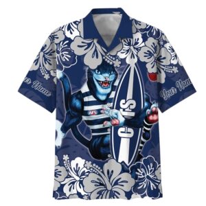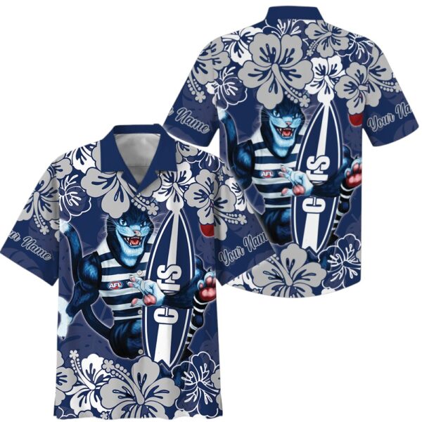 Geelong Cats Fans Gift Hawaiian Shirt, All Over Print Hawaiian Shirt For Sport Fan, Custom Name AFL161072125159
