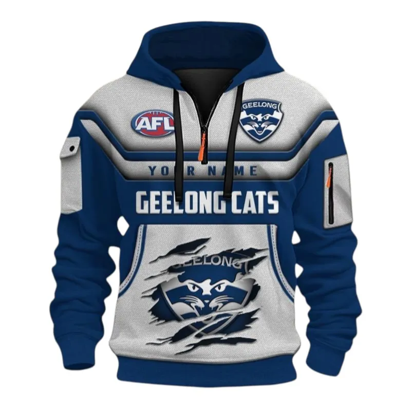 Order your custom Geelong Cats 3D Printed Half-Zip Hoodie today and rep your team in unmatched comfort and visual impact on and off the field.