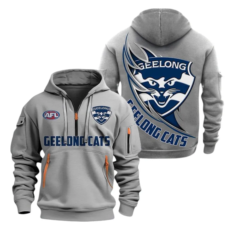 Geelong Cats Fans Gift Hoodie Half Zipper, All Over Print Hoodie Half Zipper For Sport Fan AFL142071225129 - Grey
