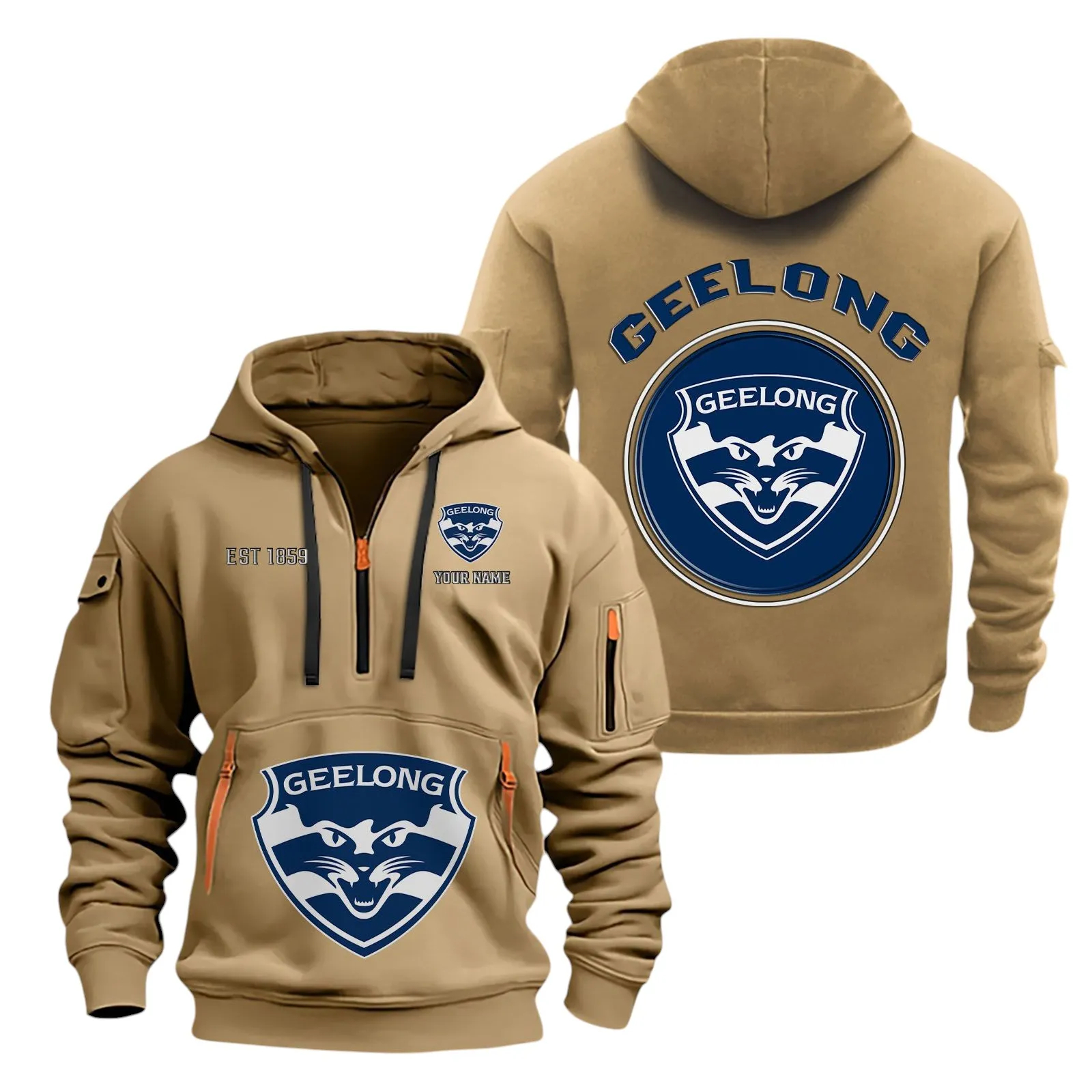 Geelong Cats Fans Gift Hoodie Half Zipper, All Over Print Hoodie Half Zipper For Sport Fan AFL153071525134 - Khaki