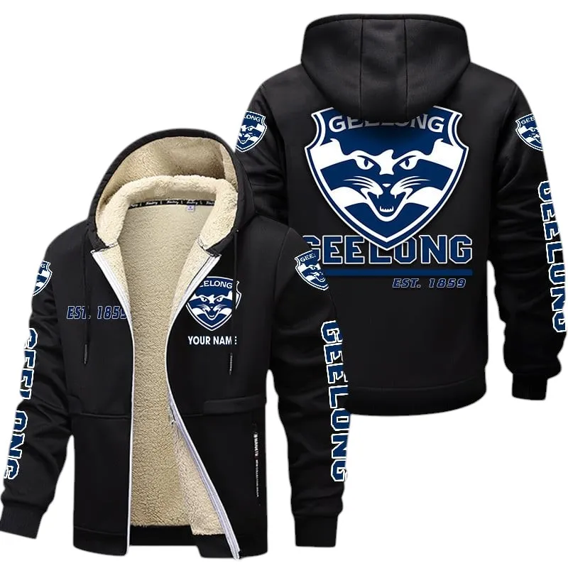 Cheer louder and layer smarter with this Geelong Cats-inspired fleece hoodie jacket, engineered to keep you warm, stylish, and game-day ready. Whether you’re heading to the stadium, tailgating with friends, or watching from home, this zip-up hoodie combines cozy comfort with bold fan energy – because loyalty doesn’t freeze when the temperature drops.