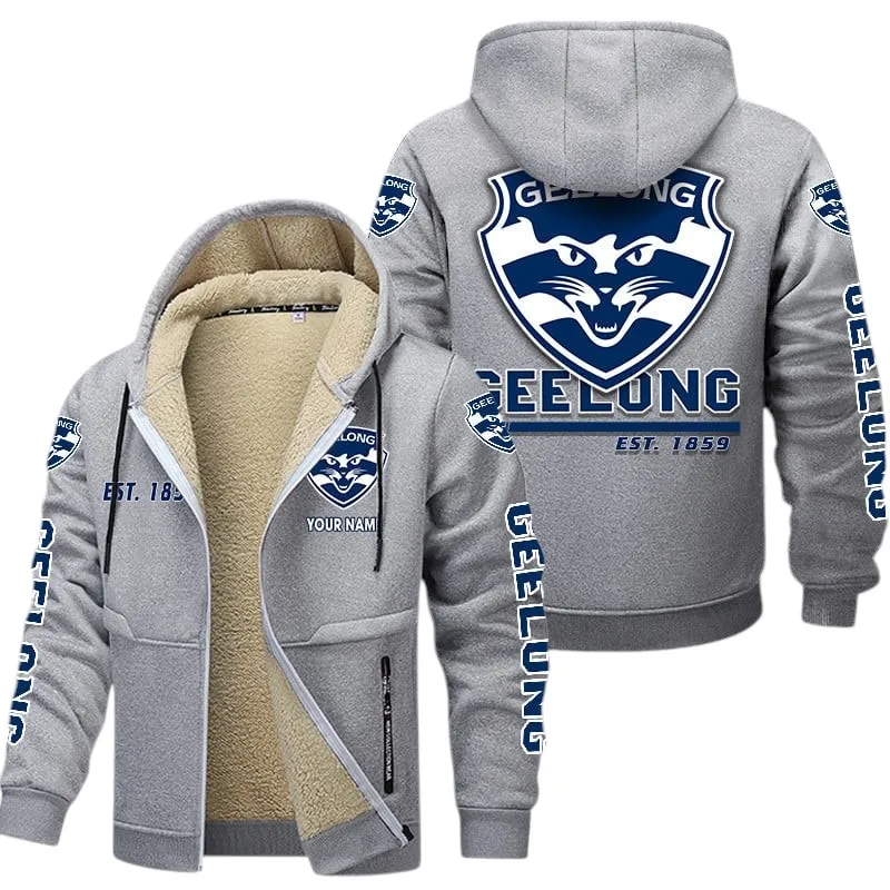 Cheer louder and layer smarter with this Geelong Cats-inspired fleece hoodie jacket, engineered to keep you warm, stylish, and game-day ready. Whether you’re heading to the stadium, tailgating with friends, or watching from home, this zip-up hoodie combines cozy comfort with bold fan energy – because loyalty doesn’t freeze when the temperature drops.