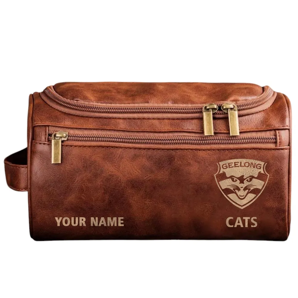 Geelong Cats Fan Leather Toiletry Bag – Game Day Organization Meets Everyday Class