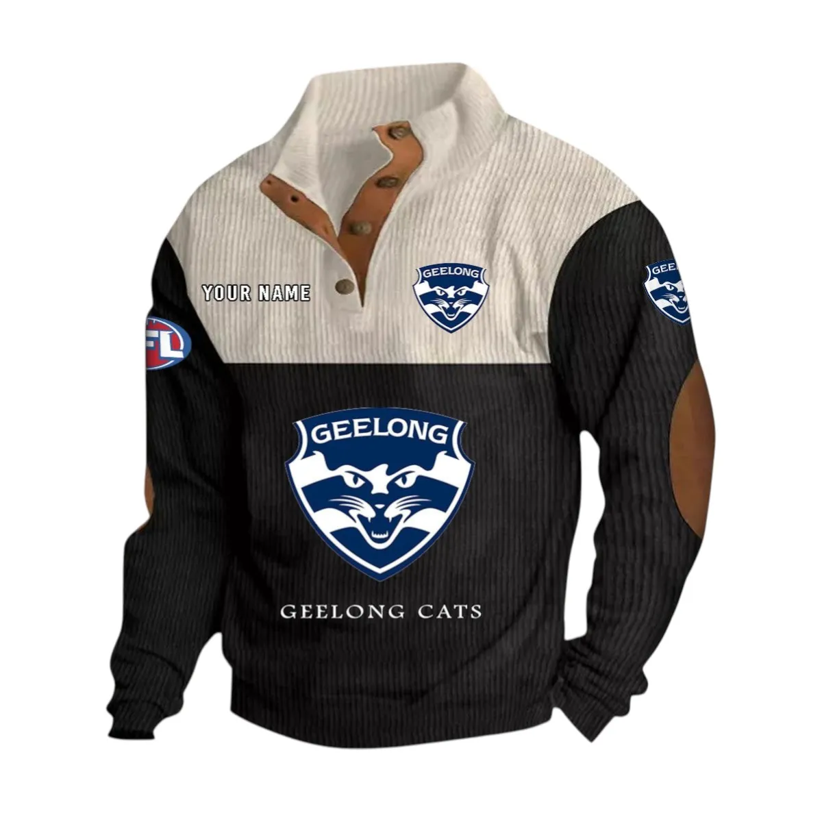 Designed with a stand-up collar instead of a traditional hood, this fan-favorite offers a fresh take on the hoodie look while still delivering the comfort and streetwear energy Geelong Cats supporters love. Stay warm and sharp without sacrificing your loyalty.