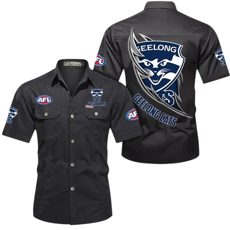 Geelong Cats Fans Gift Short Sleeved Shirt, All Over Print Shỉt For Sport Fan, Custom Name AFL155071425134 - Dark Blue