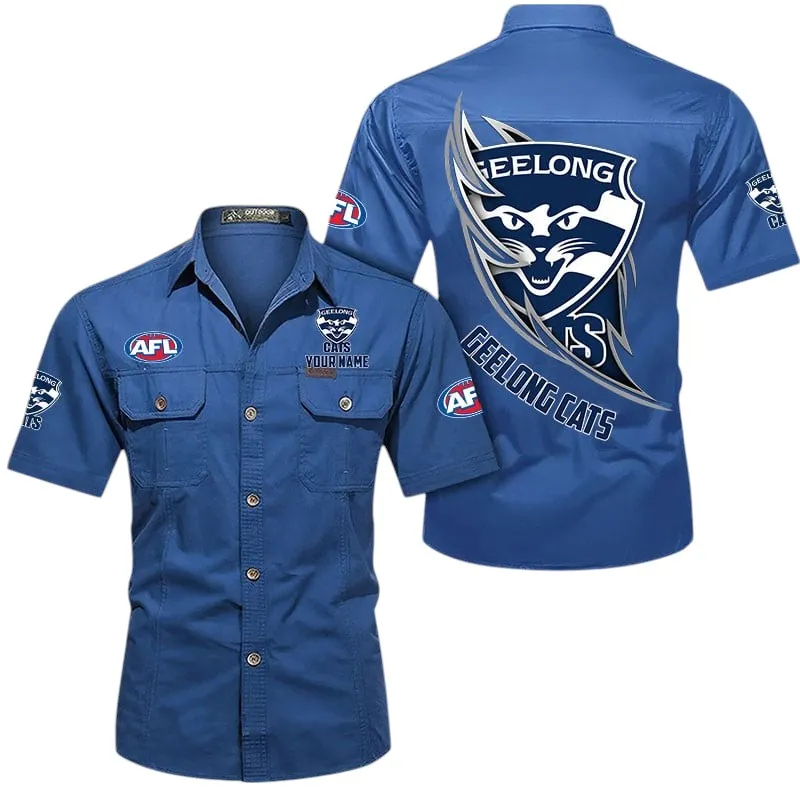 Geelong Cats Fans Gift Short Sleeved Shirt, All Over Print Shỉt For Sport Fan, Custom Name AFL155071425134 – Cowboy Blue