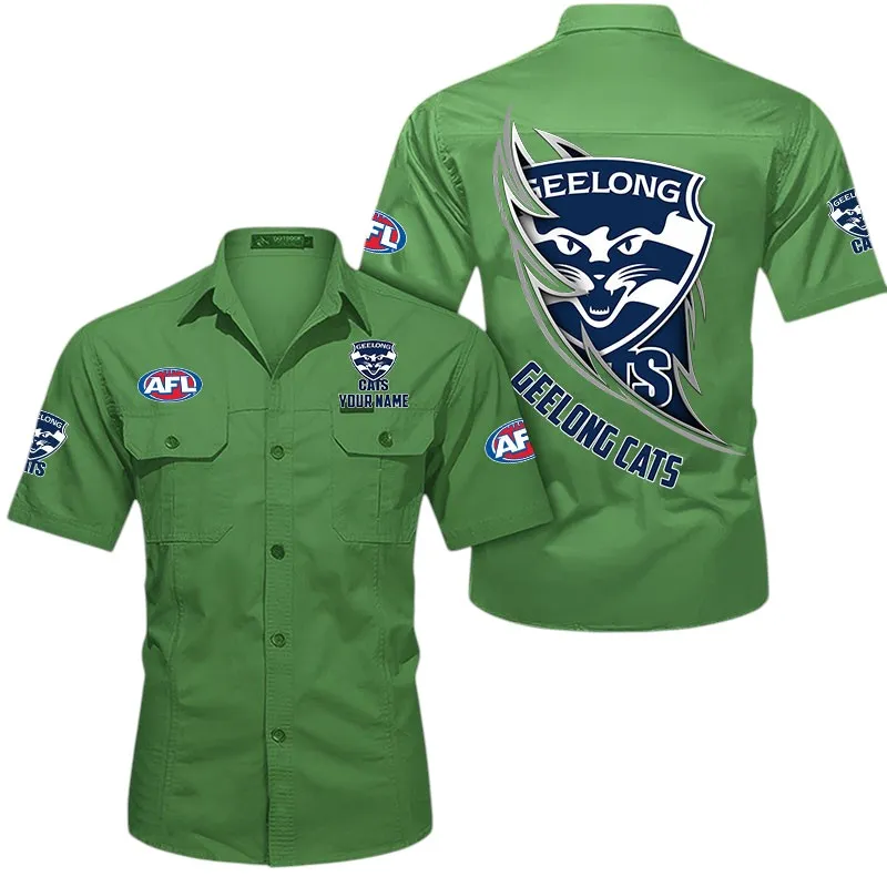 Geelong Cats Fans Gift Short Sleeved Shirt, All Over Print Shỉt For Sport Fan, Custom Name AFL155071425134 – Fruit Green