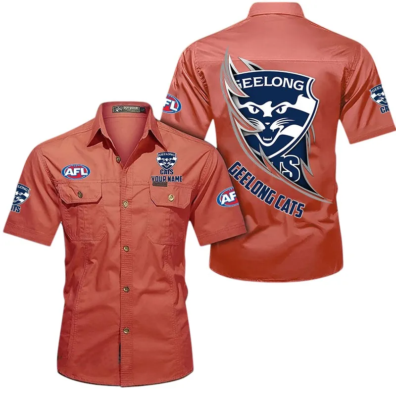 Geelong Cats Fans Gift Short Sleeved Shirt, All Over Print Shỉt For Sport Fan, Custom Name AFL155071425134 - Turmeric