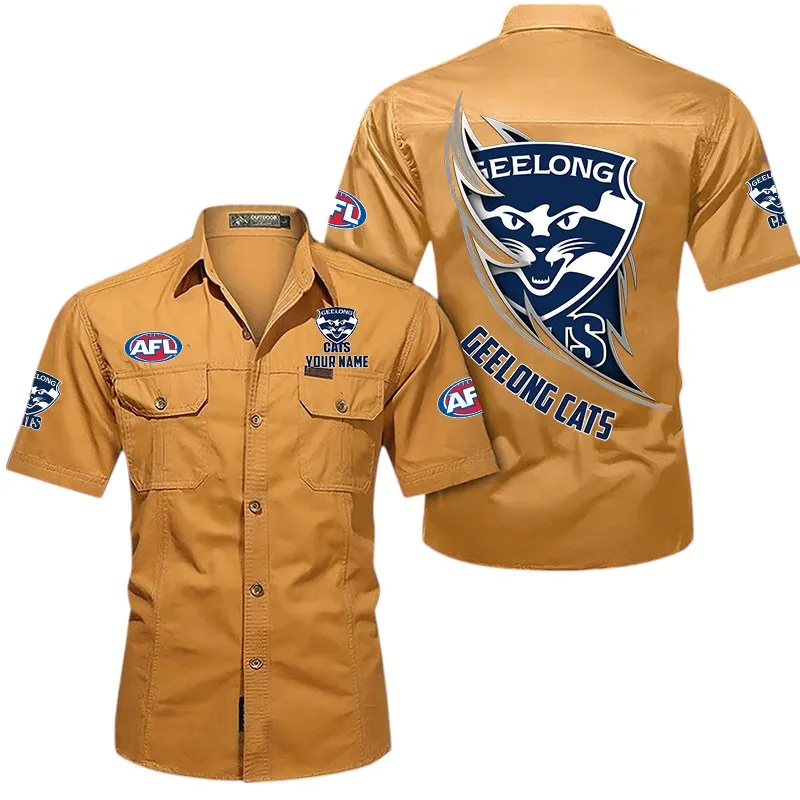 Geelong Cats Fans Gift Short Sleeved Shirt, All Over Print Shỉt For Sport Fan, Custom Name AFL155071425134 - Turmeric