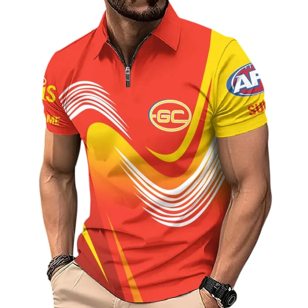Gold Coast Suns AFL Zipper Polo Shirt AFL08120624435, Gift For Fan Gold Coast Suns