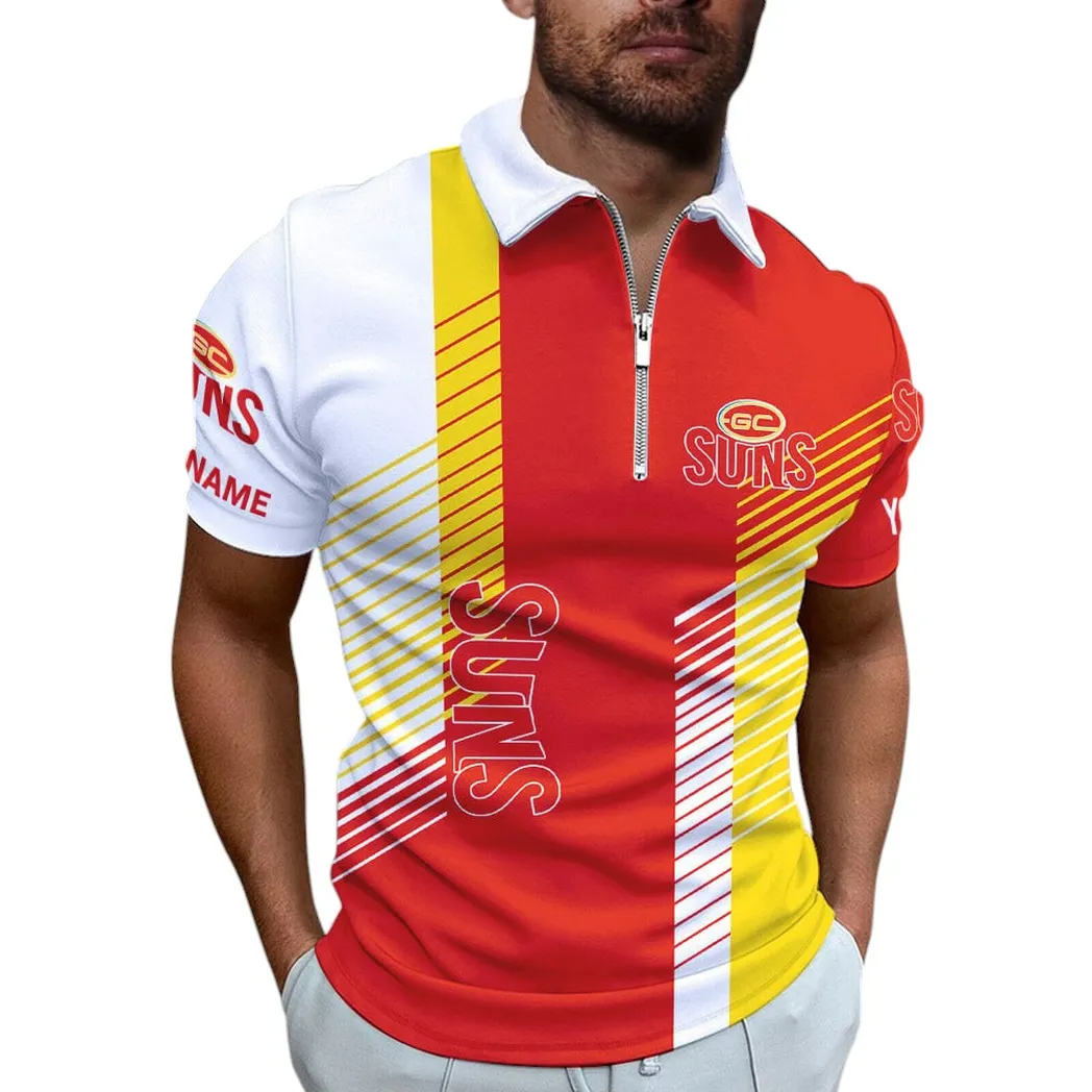 Gold Coast Suns AFL Zipper Polo Shirt AFL11121024105, Gift For Fan Gold Coast Suns