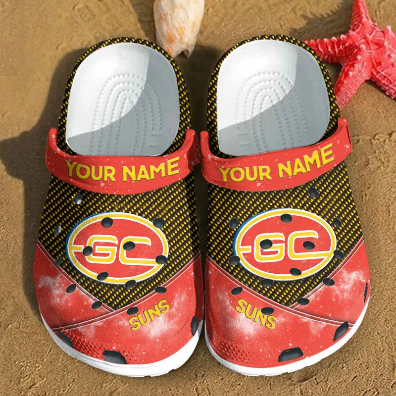 Gold Coast Suns Fans Gift Crocs, All Over Print Crocs For Sport Fan, Custom Name AFL149071825139