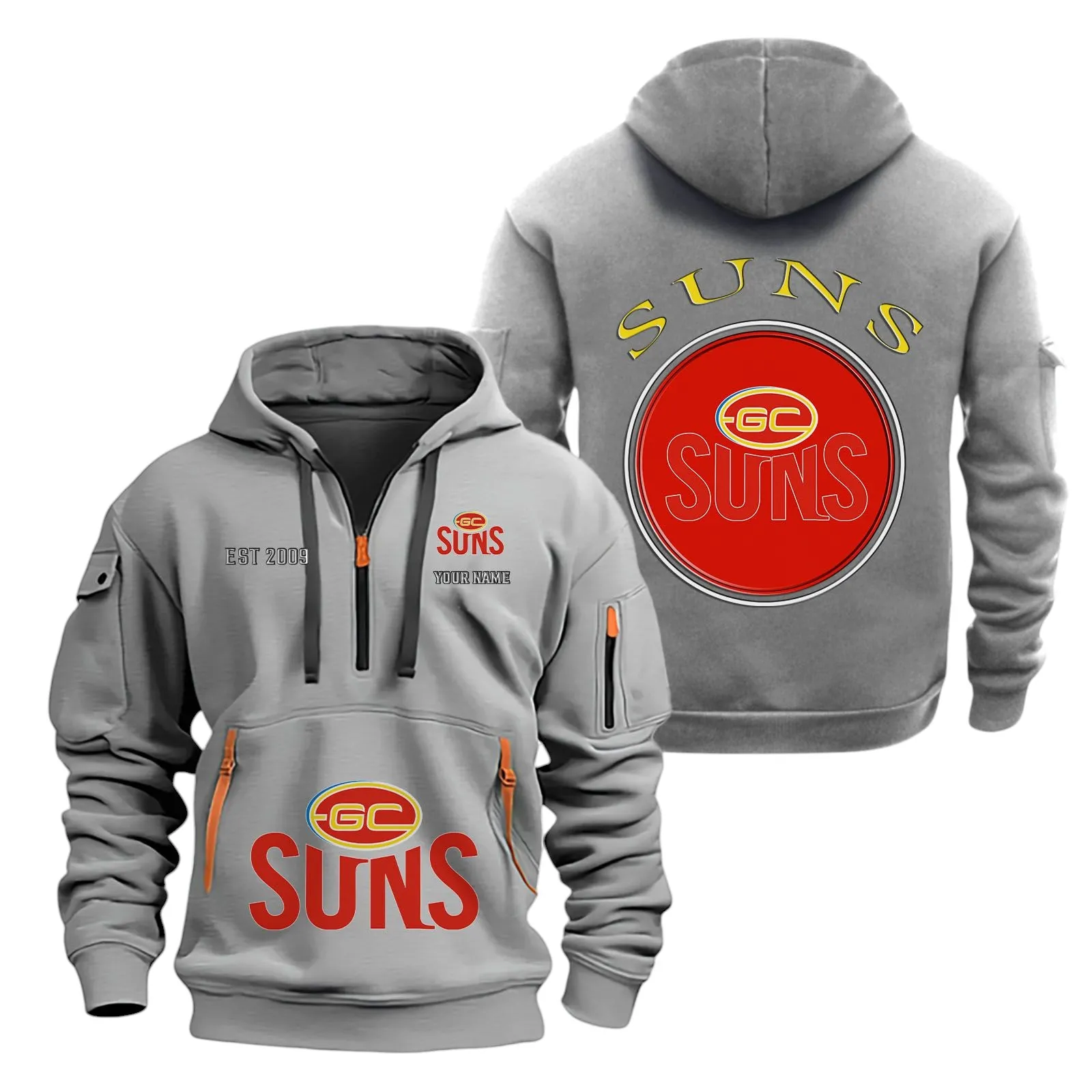Gold Coast Suns Fans Gift Hoodie Half Zipper, All Over Print Hoodie Half Zipper For Sport Fan AFL153071525140 – Grey