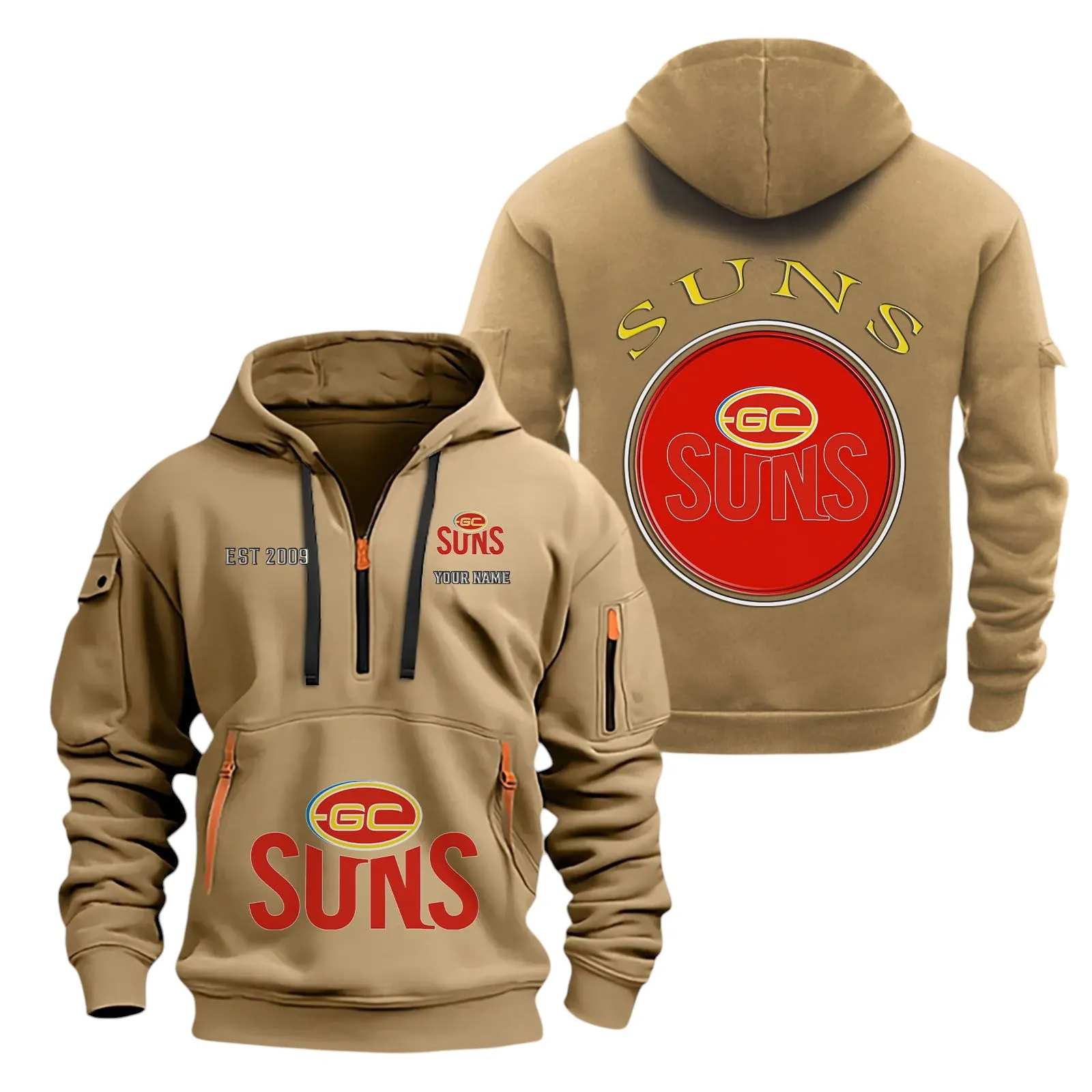 Gold Coast Suns Fans Gift Hoodie Half Zipper, All Over Print Hoodie Half Zipper For Sport Fan AFL153071525140 - Khaki