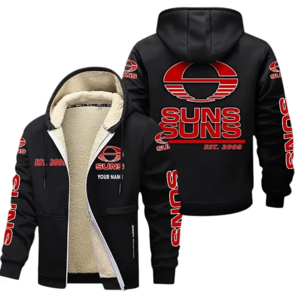 Gold Coast Suns Fans Gift Lamb Fleece Thick Coat, All Over Print Thick Coat For Sport Fan, Custom Name AFL144071725135 - Black