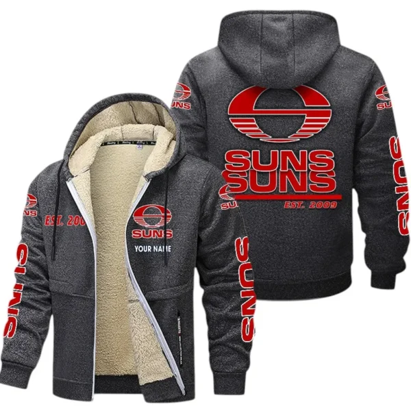 Gold Coast Suns Fans Gift Lamb Fleece Thick Coat, All Over Print Thick Coat For Sport Fan, Custom Name AFL144071725135 - Dark gray