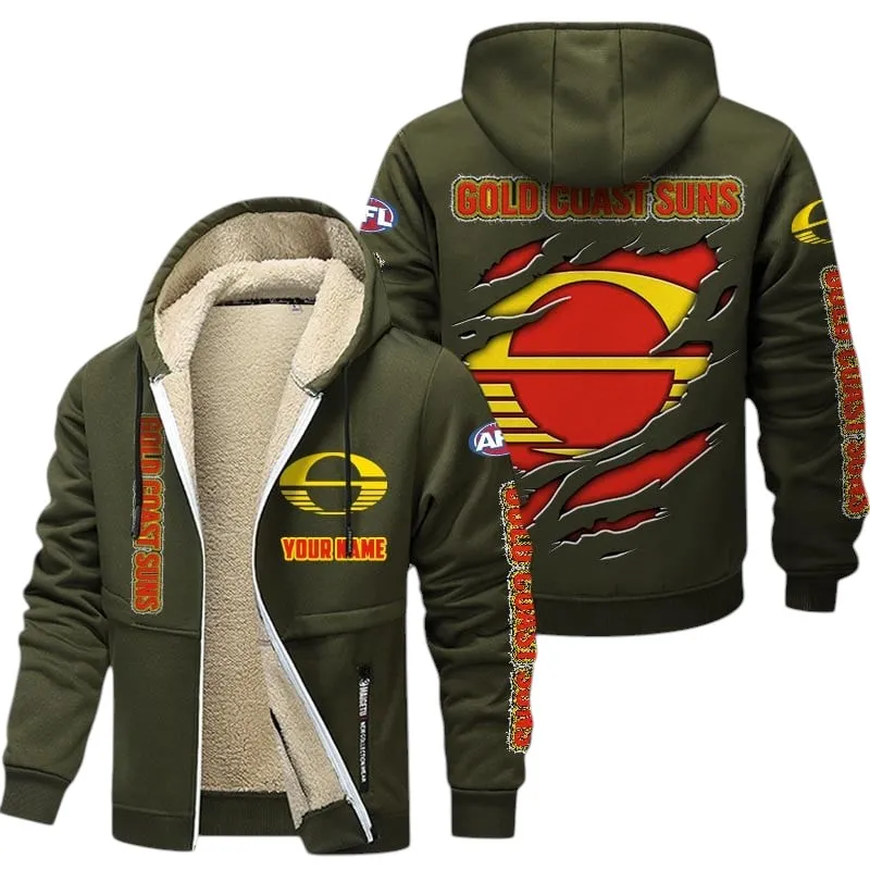 Gold Coast Suns Fans Gift Lamb Fleece Thick Coat, All Over Print Thick Coat For Sport Fan, Custom Name AFL145071825140 - Army Green