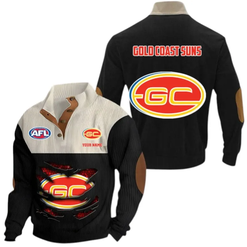 Gold Coast Suns Fans Gift Men's Stand Up Collar Base Shirt, All Over Print Base Shirt For Sport Fan, Custom Name AFL165020825129 - Black