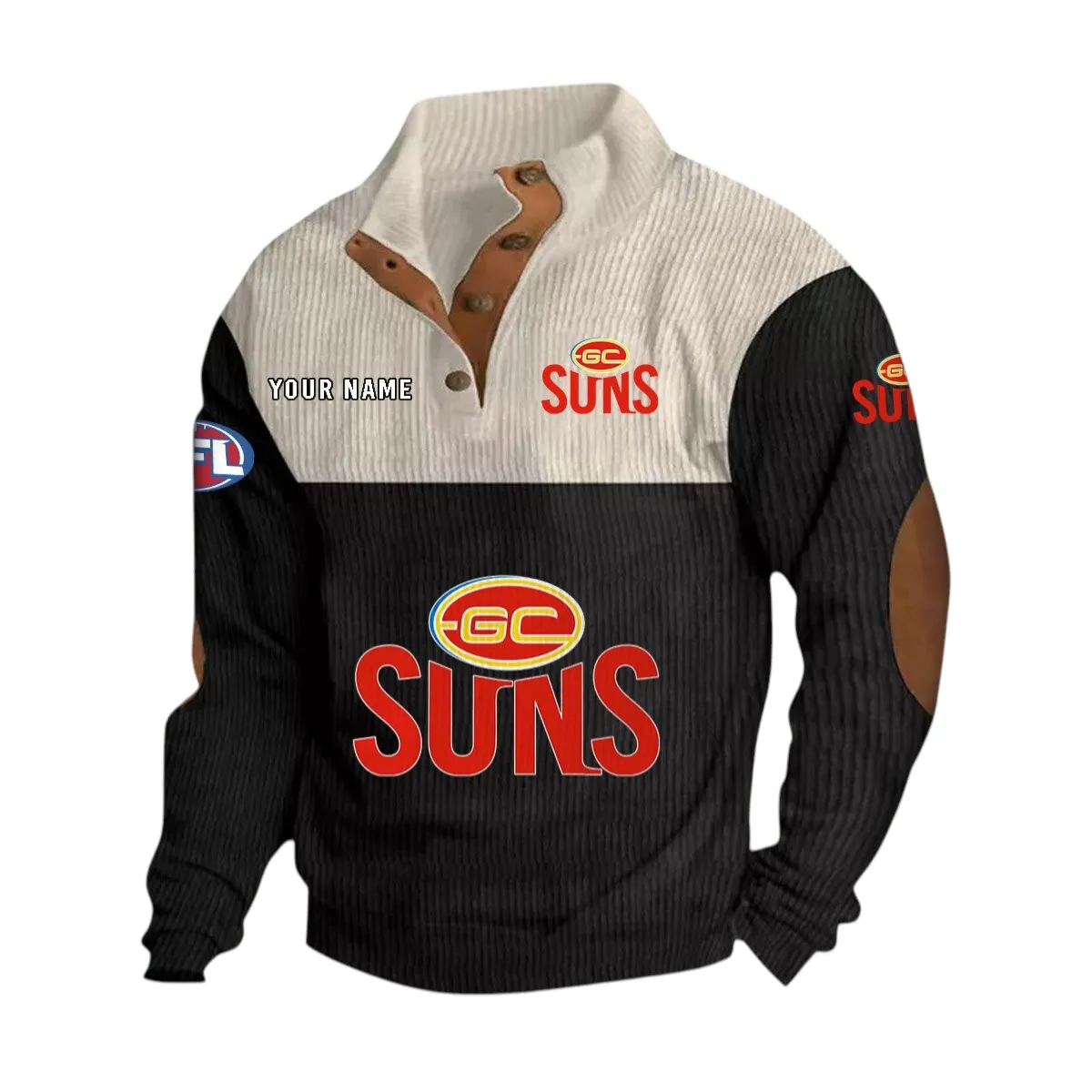 Gold Coast Suns Fans Gift Men's Stand Up Collar Base Shirt, All Over Print Base Shirt For Sport Fan, Custom Name AFL166080225128 - Black