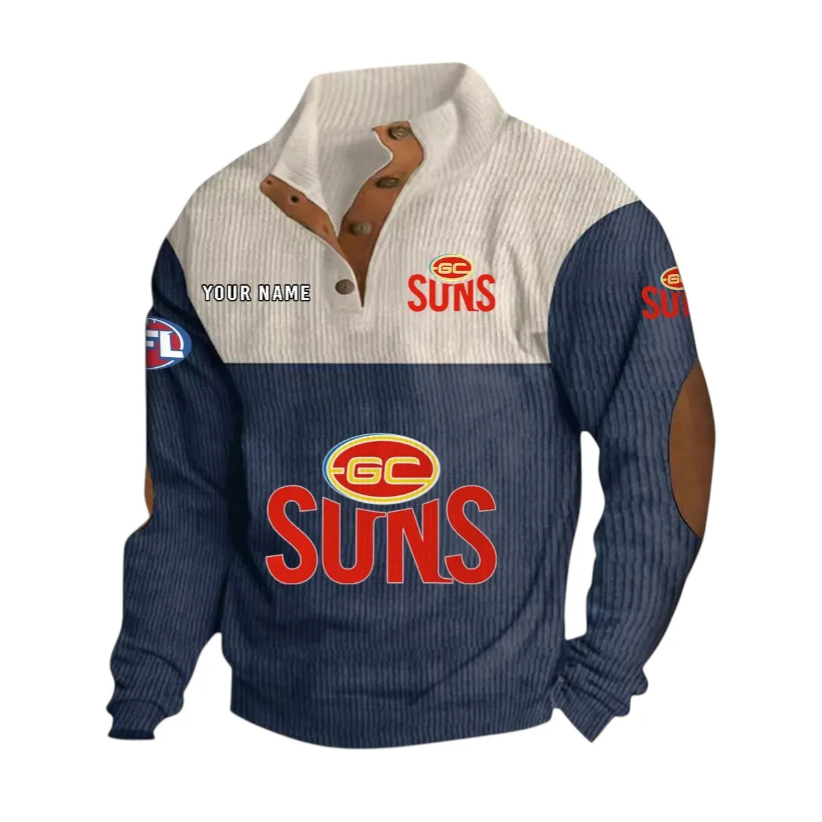 Designed with a stand-up collar instead of a traditional hood, this fan-favorite offers a fresh take on the hoodie look while still delivering the comfort and streetwear energy Gold Coast Suns supporters love. Stay warm and sharp without sacrificing your loyalty.