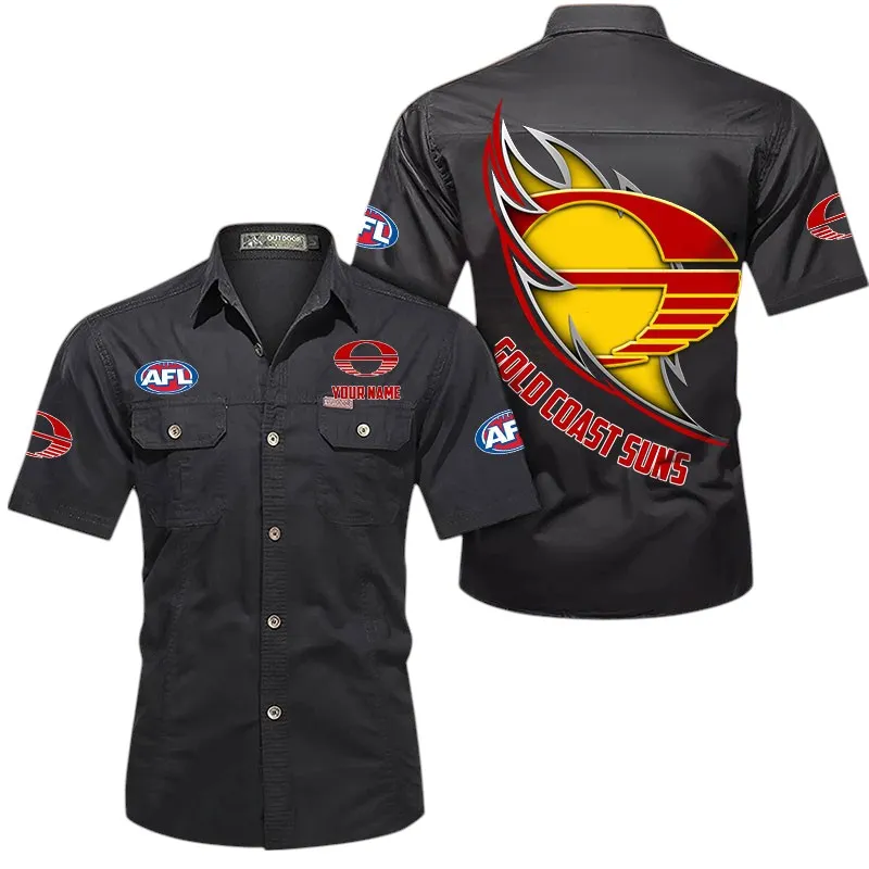 Gold Coast Suns Fans Gift Short Sleeved Shirt, All Over Print Shỉt For Sport Fan, Custom Name AFL155071425136 - Turmeric