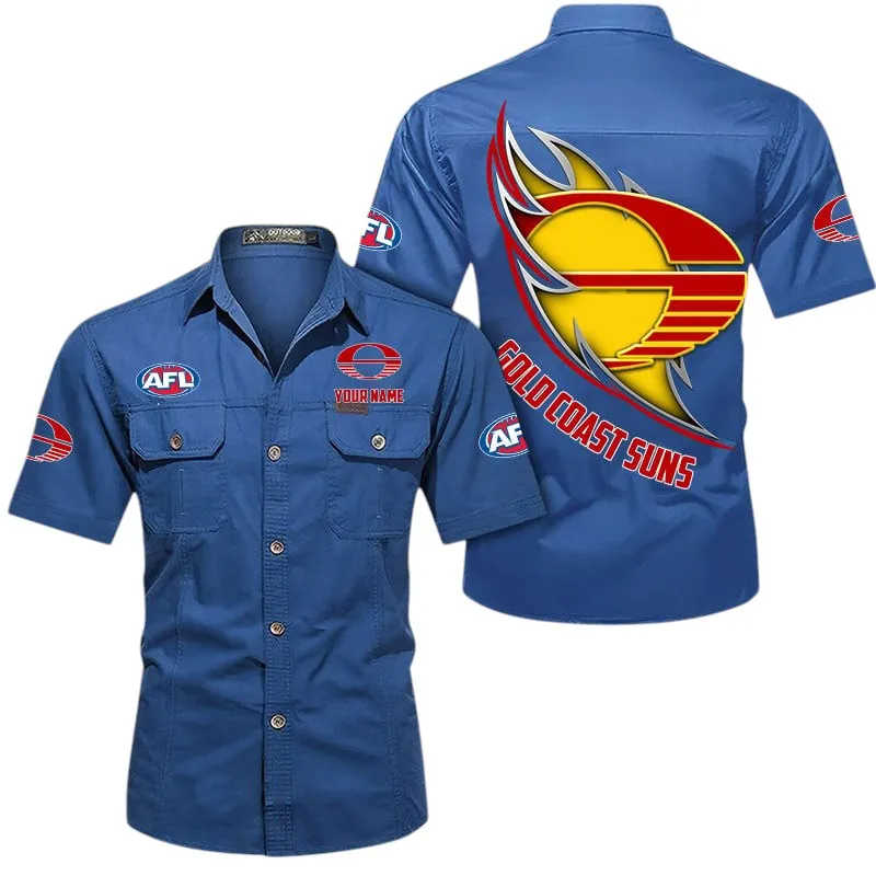 Gold Coast Suns Fans Gift Short Sleeved Shirt, All Over Print Shỉt For Sport Fan, Custom Name AFL155071425136 – Cowboy Blue