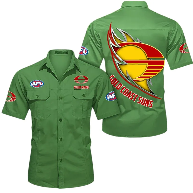 Gold Coast Suns Fans Gift Short Sleeved Shirt, All Over Print Shỉt For Sport Fan, Custom Name AFL155071425136 - Army Green