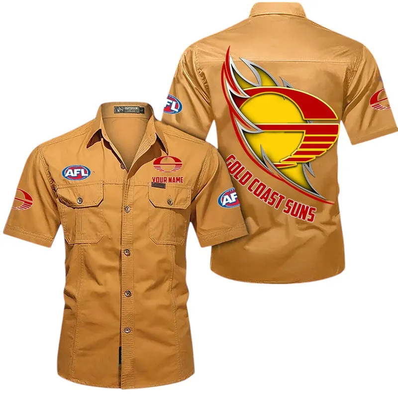Gold Coast Suns Fans Gift Short Sleeved Shirt, All Over Print Shỉt For Sport Fan, Custom Name AFL155071425136 - Khaki