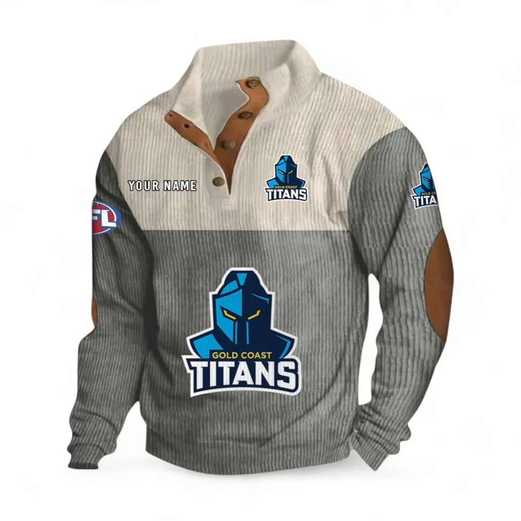 Custom Gold Coast Titans Stand-Up Collar Hoodie – Fan-First Style, Cold-Weather Ready