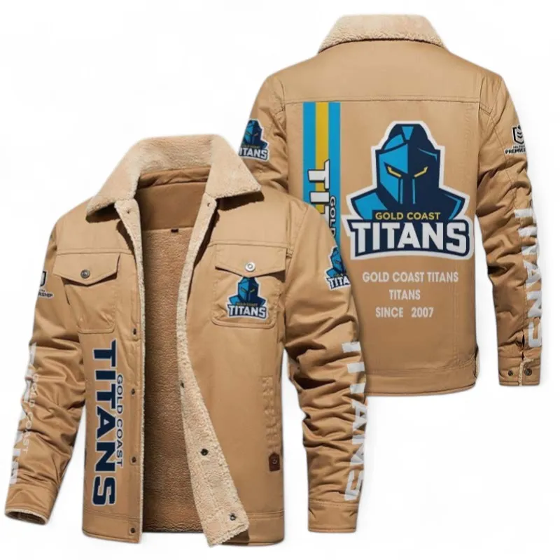 Gold Coast Titans Jacket Fur Collar Fleece, All Over Print Jacket Fur Collar Fleece For Sport Fan NRL178072225674-Khaki