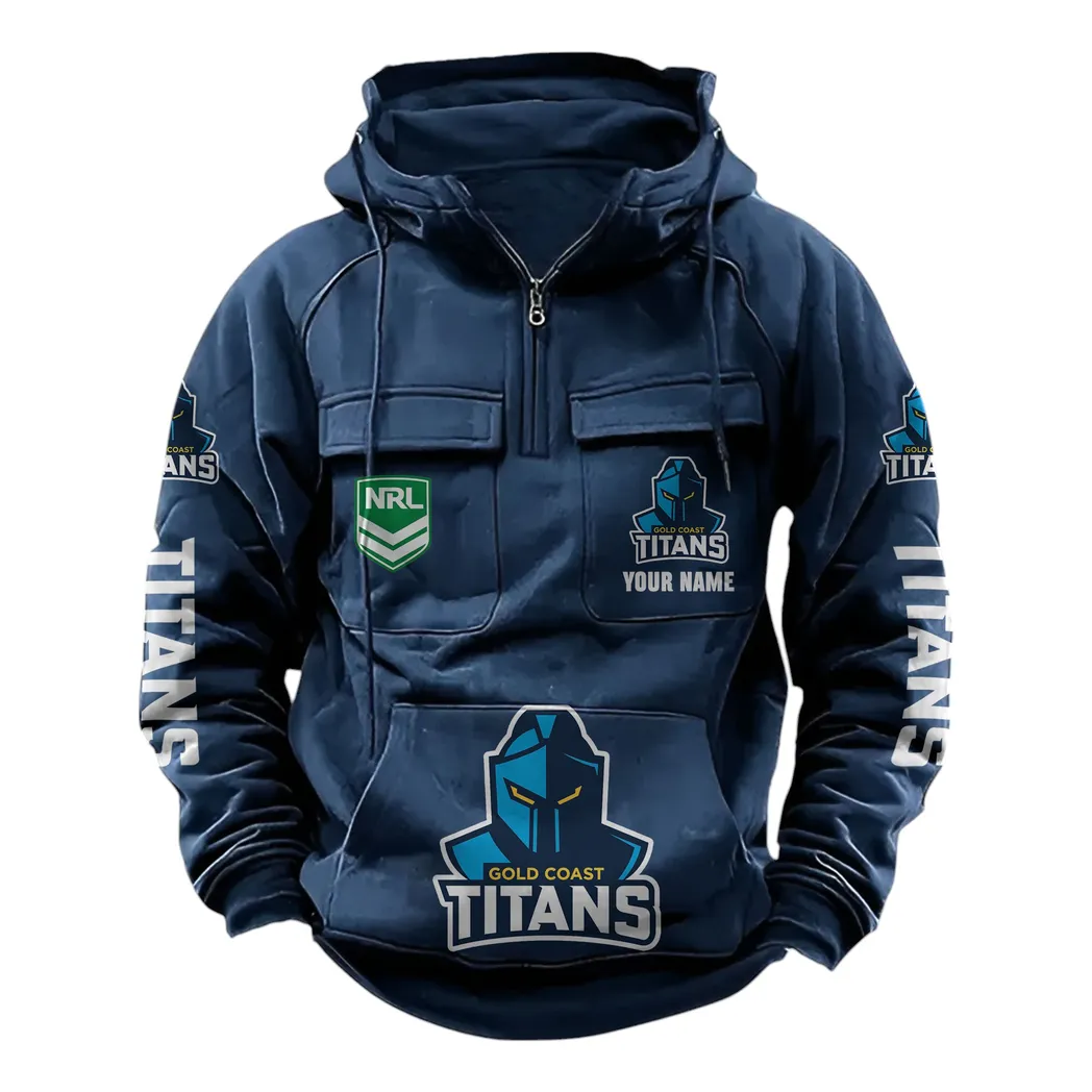Gold Coast Titans NRL Tactical Quarter Zip Hoodie NRL43012125566, Gift For Fan Gold Coast Titans – Dark Blue
