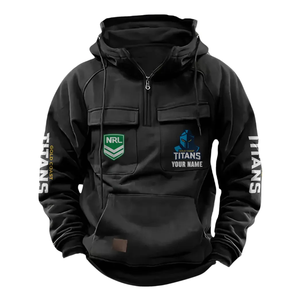 Gold Coast Titans NRL Tactical Quarter Zip Hoodie NRL43012125577, Gift For Fan Gold Coast Titans - Black