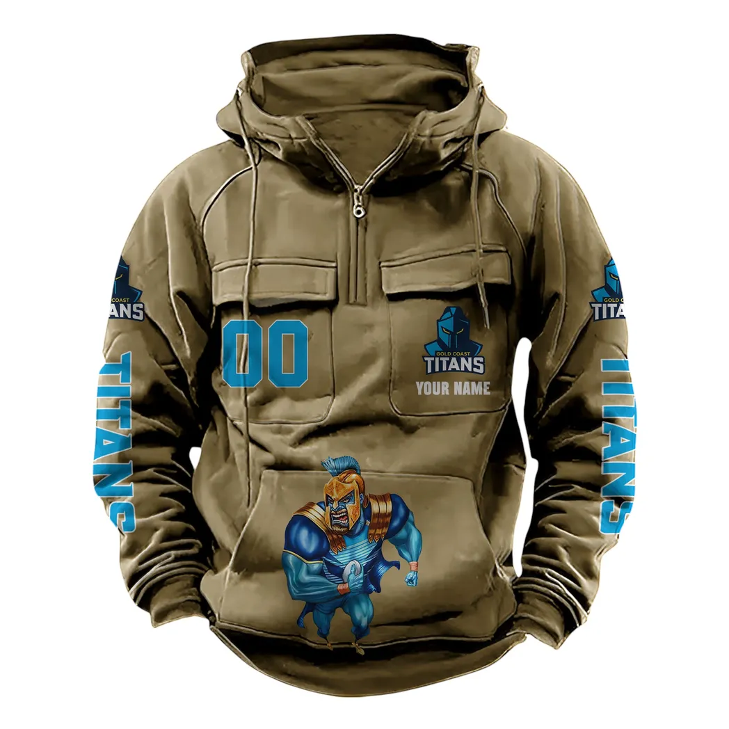 Gold Coast Titans NRL Tactical Quarter Zip Hoodie NRL43012125596, Gift For Fan Gold Coast Titans – Khaki