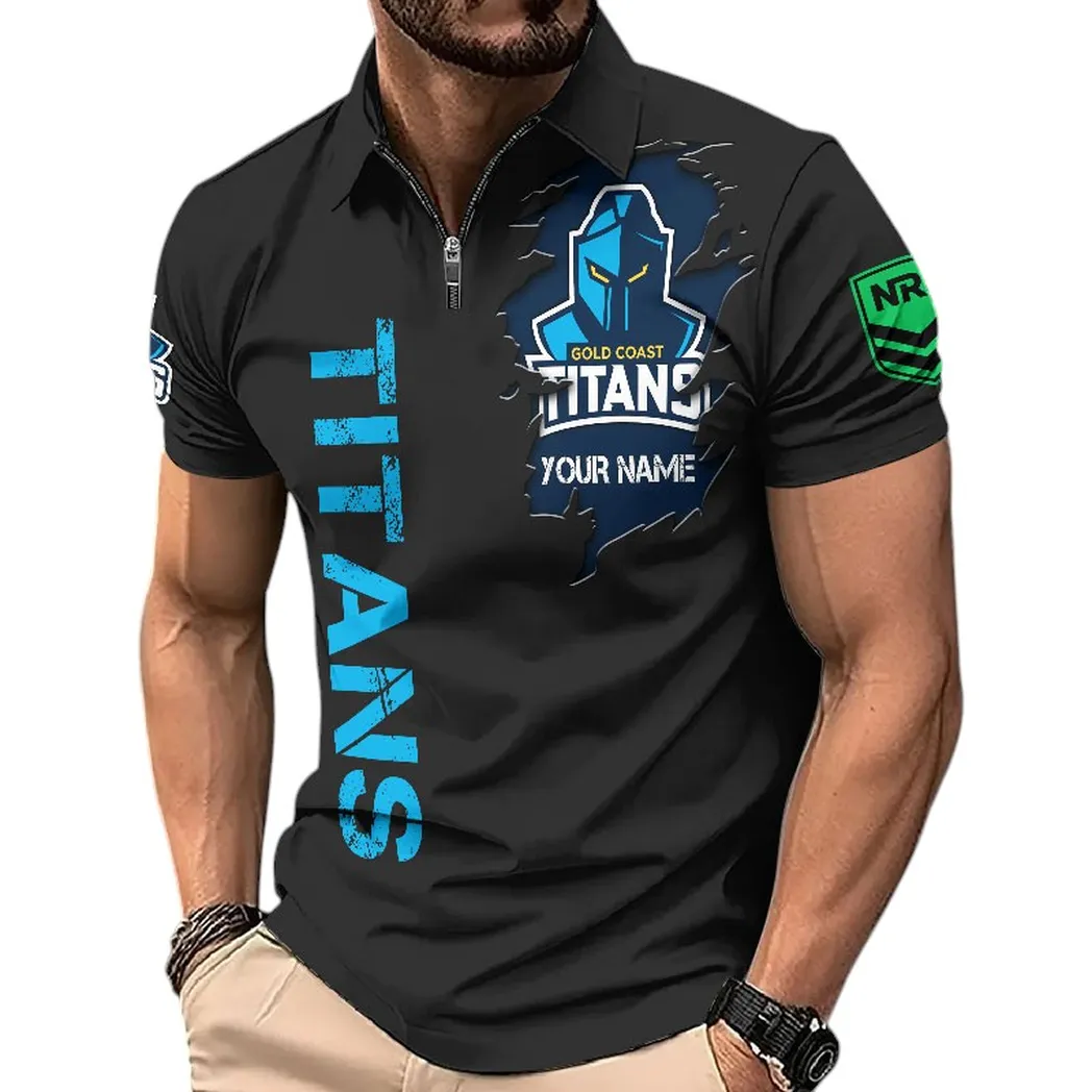 Gold Coast Titans NRL Zipper Polo Shirt NRL01121424354, Gift For Fan Gold Coast Titans
