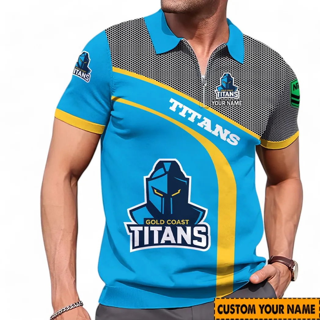 Gold Coast Titans NRL Zipper Polo Shirt NRL02121624407, Gift For Fan Gold Coast Titans