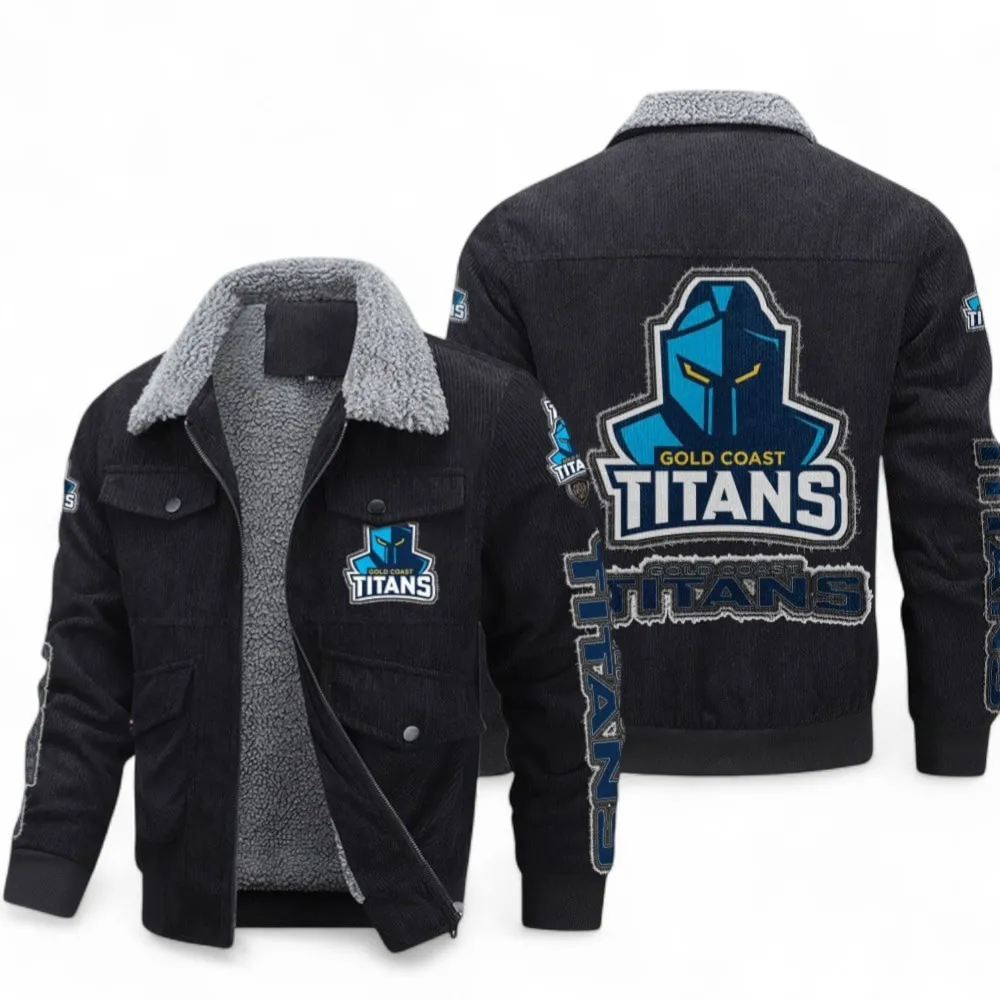 Custom Gold Coast Titans Thickened Corduroy Jacket – Classic Warmth, Bold Team Spirit
