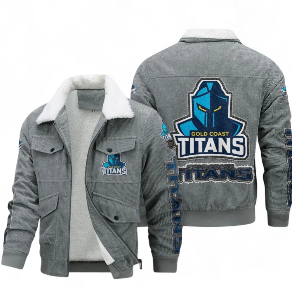 Custom Gold Coast Titans Thickened Corduroy Jacket – Classic Warmth, Bold Team Spirit
