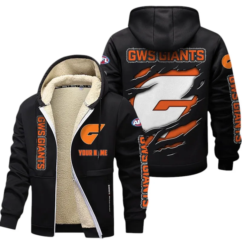 Gws Giants Fans Gift Lamb Fleece Thick Coat, All Over Print Thick Coat For Sport Fan, Custom Name AFL145071825128 - Black