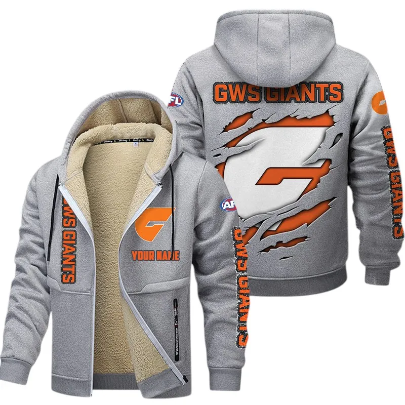 Gws Giants Fans Gift Lamb Fleece Thick Coat, All Over Print Thick Coat For Sport Fan, Custom Name AFL145071825128 – Light gray