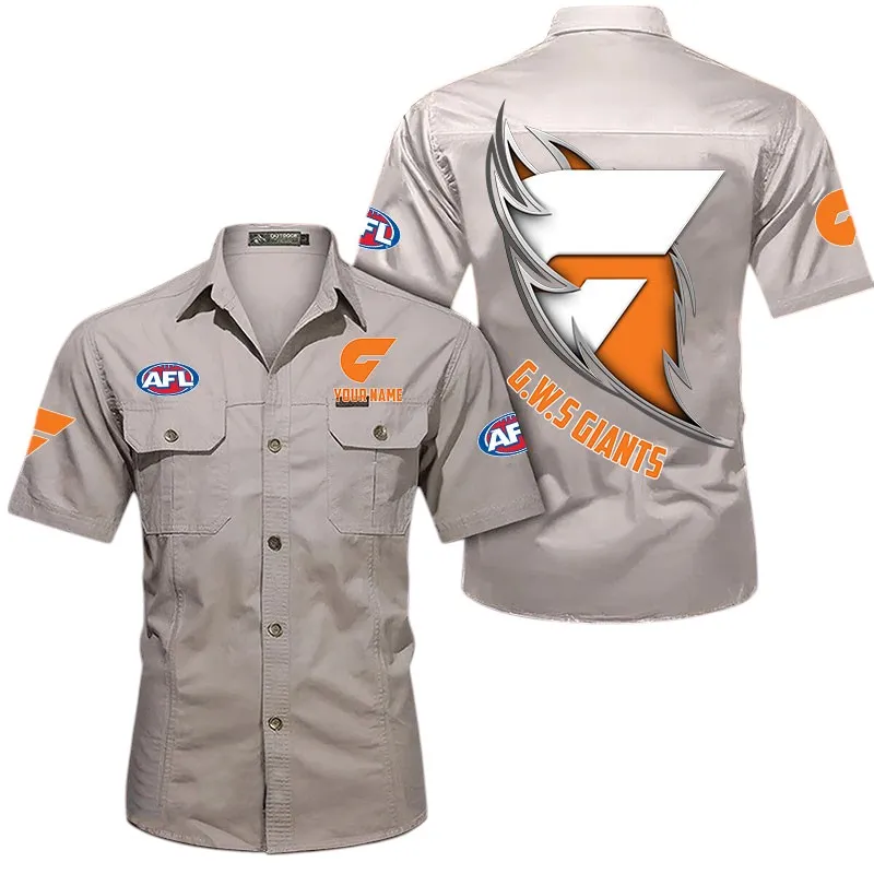 Gws Giants Fans Gift Short Sleeved Shirt, All Over Print Shỉt For Sport Fan, Custom Name AFL155071425133 - Khaki