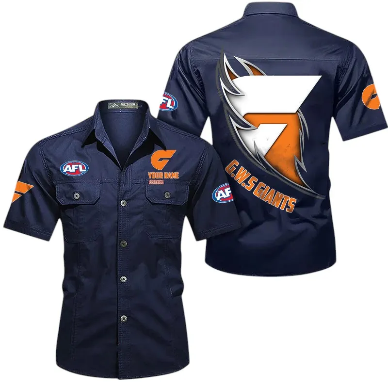Gws Giants Fans Gift Short Sleeved Shirt, All Over Print Shỉt For Sport Fan, Custom Name AFL155071425133 – Dark Blue