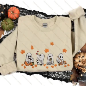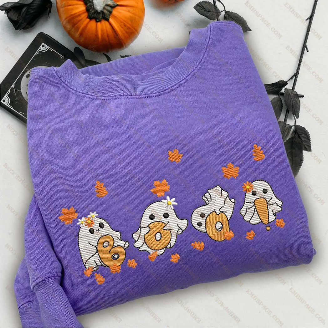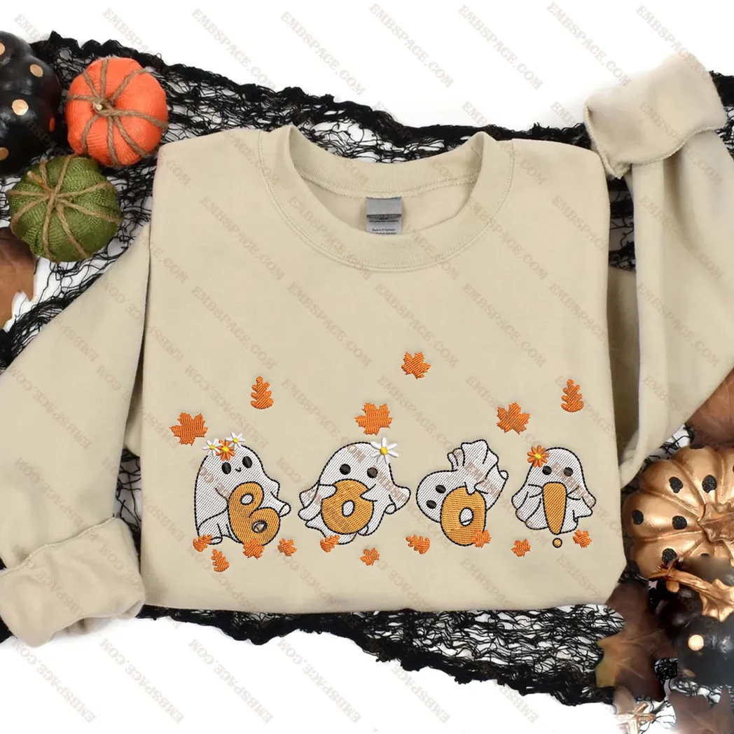 Halloween Cute Four Boo Ghost Embroidered Sweatshirt Fashion Style