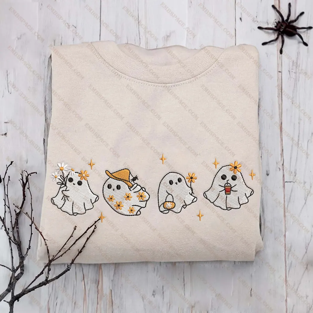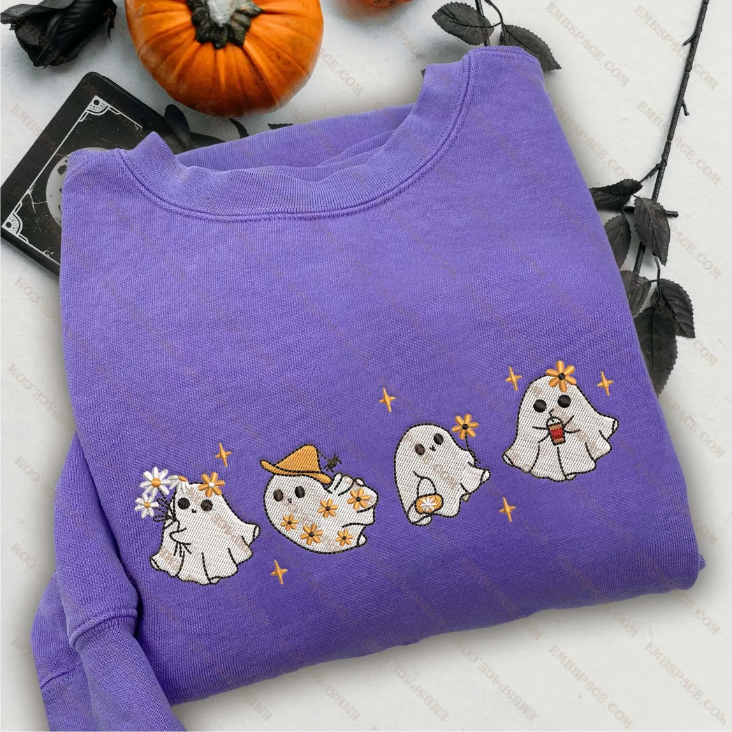 Halloween Cute Four Ghost Flower Embroidered Sweatshirt Fashion Style