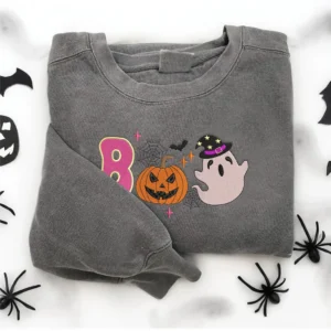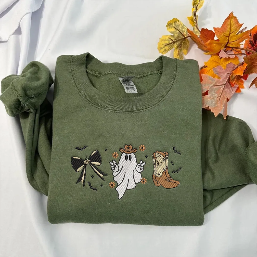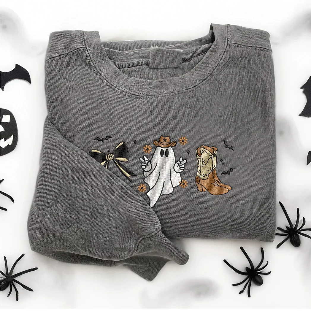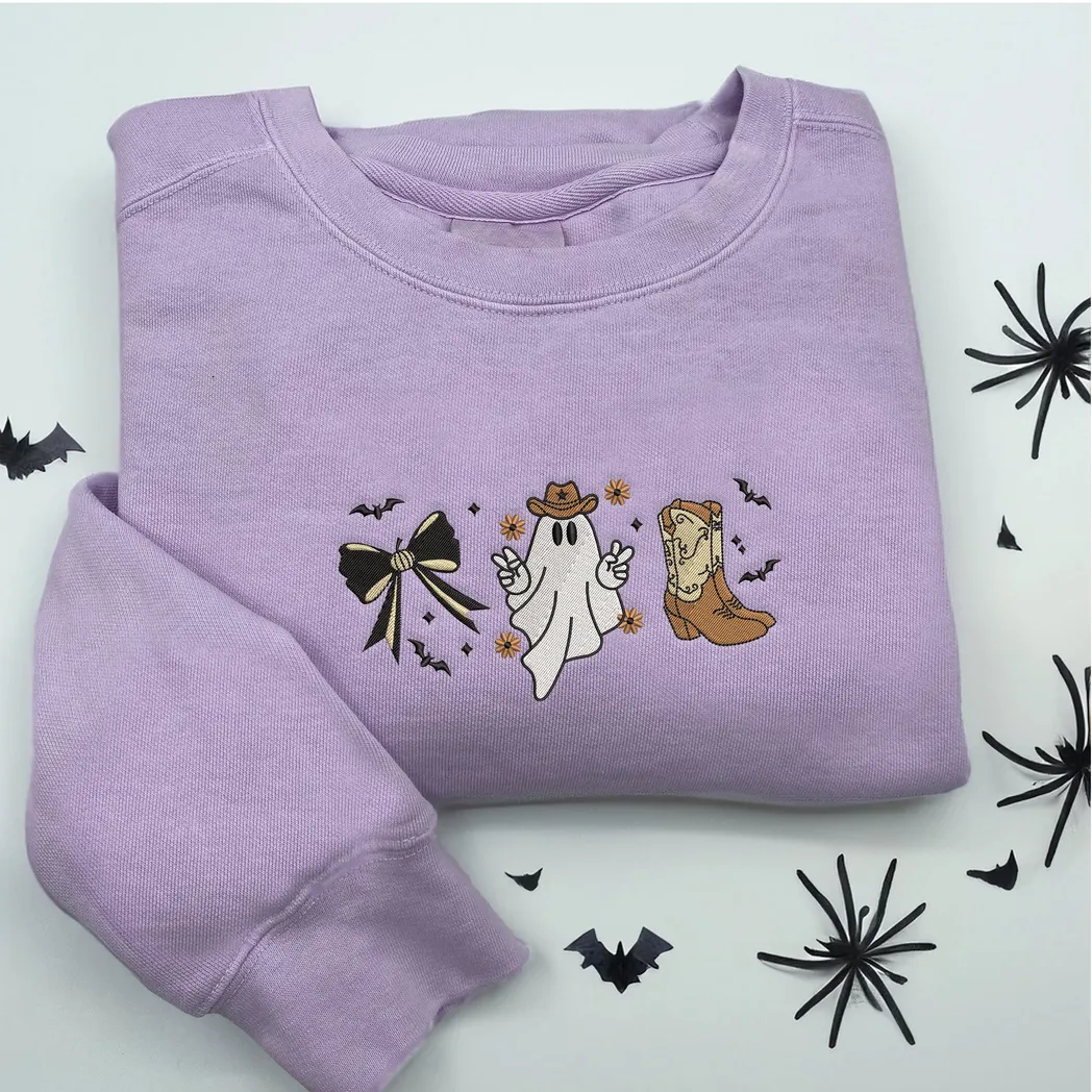 Halloween Cute Ghost Bow Tie And Shoes Embroidered Sweatshirt Fashion Style