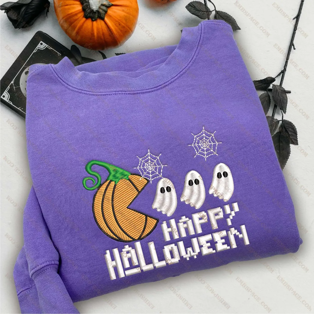 Happy Halloween Pumpkin Ghost Embroidered Sweatshirt Fashion Style