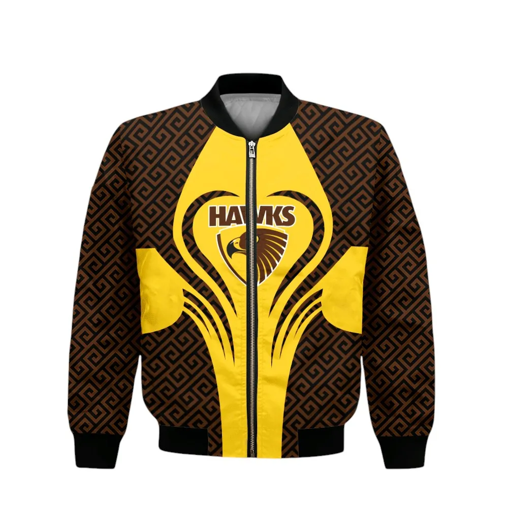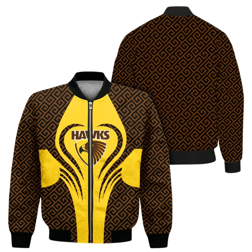 Rep your loyalty in style with this custom Hawthorn bomber jacket, built for fans who want to stay warm, look sharp, and show their pride all season long. With a classic silhouette and a fresh custom print, it’s the ultimate blend of team spirit and street-ready fashion.