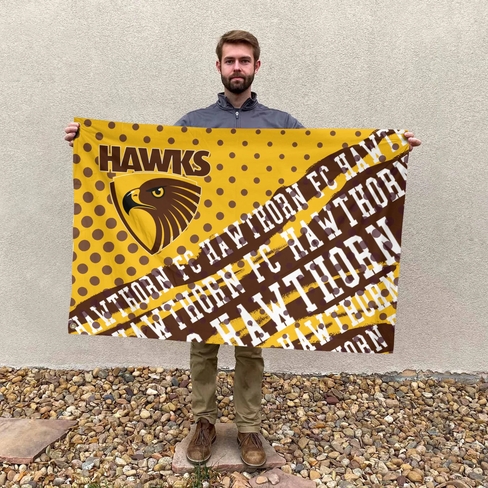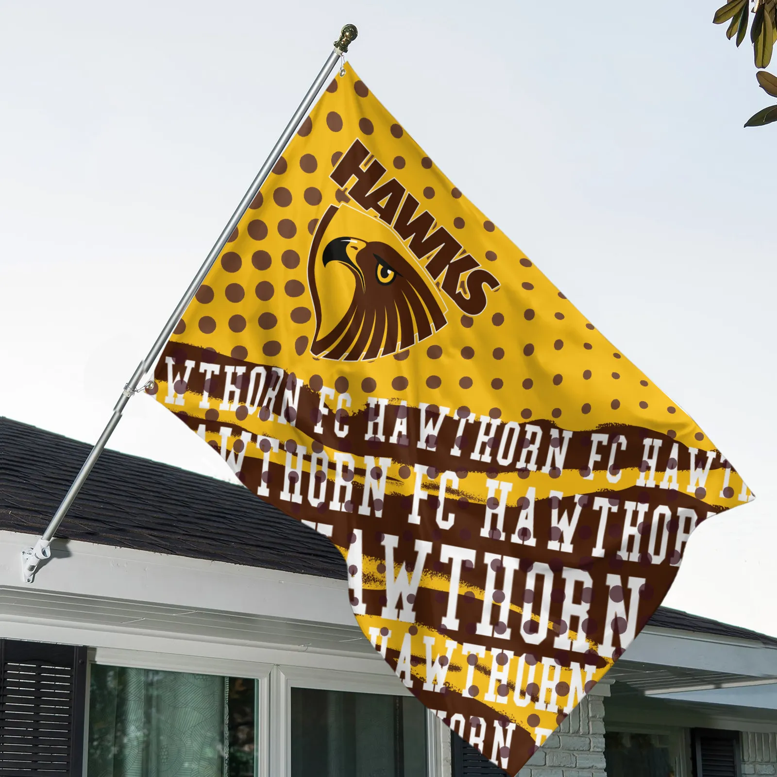 Fly your team pride high with our custom-printed Hawthorn flags, designed for die-hard fans who want to showcase their loyalty in style. Whether it’s game day, tailgate season, or just everyday fan life, these vibrant, weather-resistant flags are perfect for your porch, fan cave, or garden.