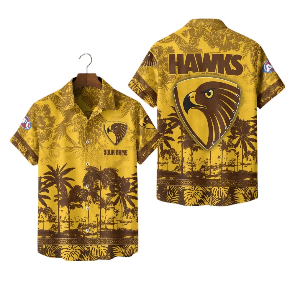 Hawthorn Fans Gift Hawaiian Shirt, All Over Print Hawaiian Shirt For Sport Fan, Custom Name AFL157071425127