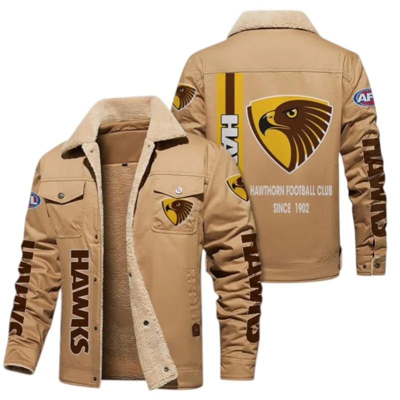 Hawthorn Fans Gift Jacket Fur Collar Fleece, All Over Print Collar Fleece For Sport Fan AFL163080225130 - Light Khaki